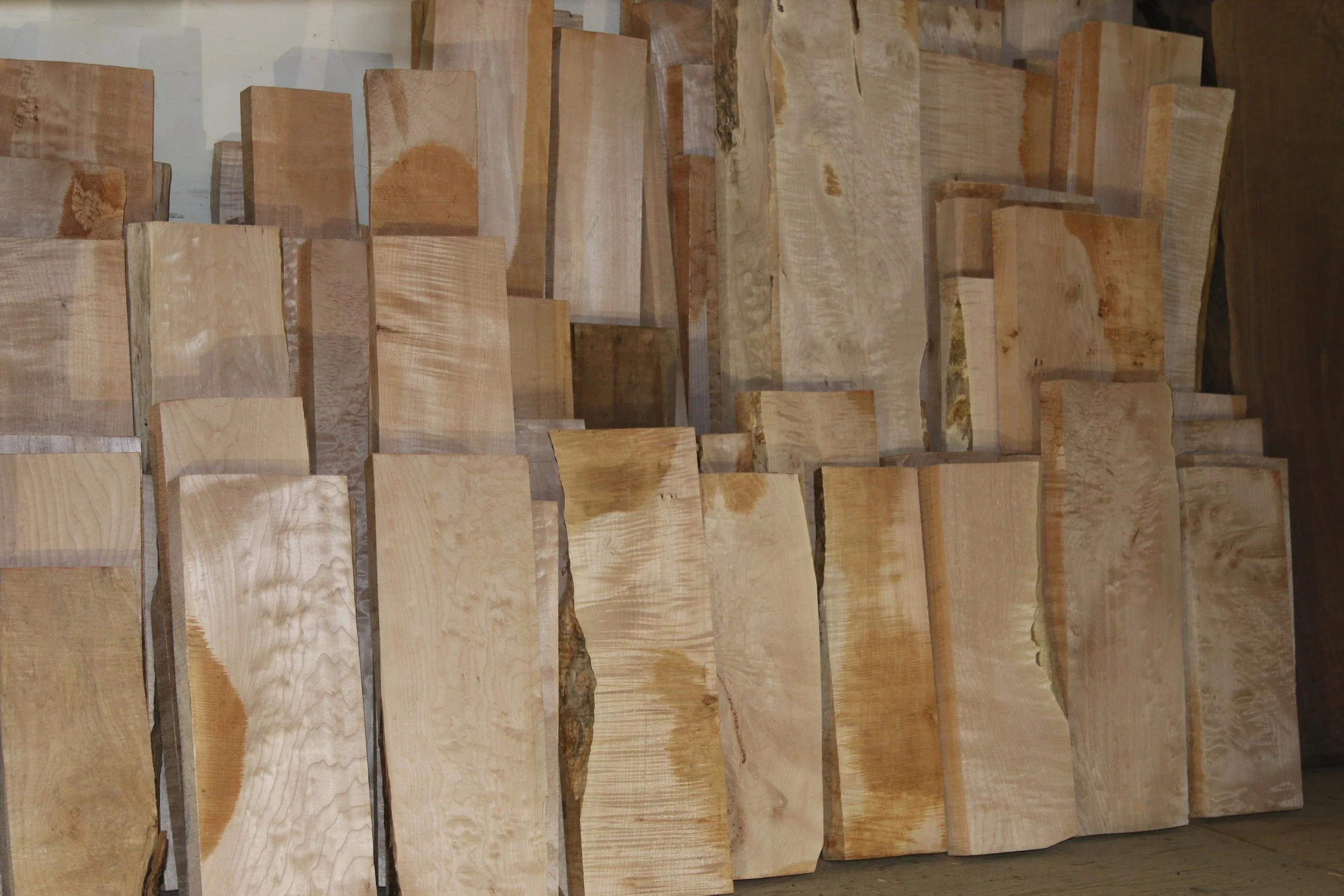 Bigleaf Maple (Acer macrophyllum) is an important tree in the Pacific Northwest, serving the essential functions of stabilizing the soils in wet and mountainous regions while cooling the waterways they commonly grow along. The figured wood produced by these giants is sought after throughout the world by luthiers and fine furniture builders alike. The depth of curl, and in particular quilt, that can be found in some of these specimens confounds the eye and sparks the imagination. Our figured stock includes curl, quilt, and pin-burl in varying dimensions.